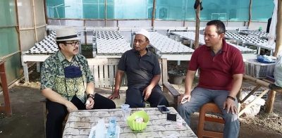 Di samping menyerahkan masker secara simbolis, HM. Sidkon Djampi, SH, juga berkesempatan meninjau ‘green house’ tempat praktek para santri Al Mu’minin – Indramayu, untuk belajar bertani sayur organik dan beternak kambing.