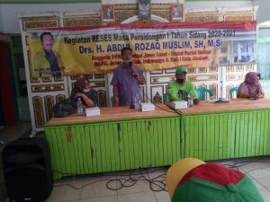 “Kami reses menemui masyarakat pada kesempatan kali ini kami melakukan reses bersama Muhammadiyah, ormas Muhammadiyah diketahui bersama mereka memiliki banyan sekolah dan konsen di dunia pendidikan, catatan pada reses kali ini mereka meminta, yang pertama adalah meminta bantuan dari Provinsi terkait ruang kelas baru serta sarana penunjang seperti laboratorium sekolah, kemudian secara umum mereka meminta bantuan APD untuk memerangi Covid-19 ini mereka sangat mendukung terhadap program Pemerintah untuk memerangi Covid-19 ini. Ujarnya”.