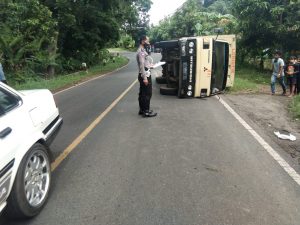 CIAMIS | Dialog Rakyat | Telah terjadi laka lantas tunggal di ruas jalan Banjar -Pangandaran sekitar pukul 9:30 mobil jenis box Mitsubishi denagan nopol Z 8864 YC Terguling pada Senin (23/11/2020).