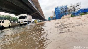 – Akses masuk Gerbang Tol (GT) Jatibening arah Jakarta tergenang, penutupan sementara akses on Ramp. Saat ini kendaraan yang akan masuk tol dialihkan melalui akses GT Jatiwaringin / Pondok Gede.