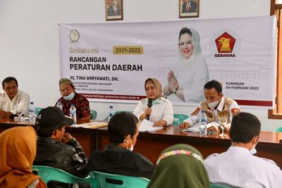 KAB.KUNINGAN | BBCOM | Anggota DPRD Jawa Barat Dapil XIII, Tina Wiryawati melaksanakan sosialisasi Rancangan Peraturan Daerah (Raperda) terkait Rencana Tata Ruang Wilayah (RTRW) Pemerintah Provinsi Jawa Barat, di Desa Nangka Kecamatan Kadugede Kabupaten Kuningan, Jumat (4/22022).