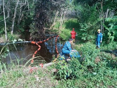PALI | Dialog Rakyat | Pipa minyak milik PT. Pertamina EP Adera Field bocor hingga mencemari sungai dan kebun warga di Desa Pengabuan Kecamatan Abab Kabupaten Penukal Abab Lematang Ilir (PALI).