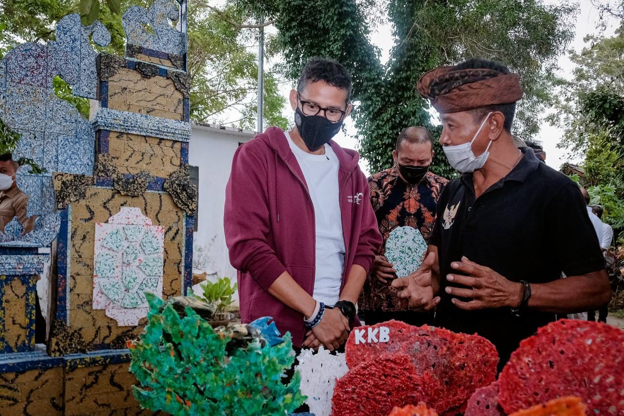 Dalam kesempatan tersebut, Menparekraf meninjau salah satu pelaku ekonomi kreatif yang juga berlokasi di dalam kawasan Kura-kura Bali. Dimana pelaku ekraf tersebut mengelola limbah plastik menjadi produk-produk bernilai ekonomi. Nantinya, produk kreatif ini akan dihadirkan pada perhelatan G20.