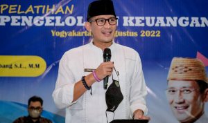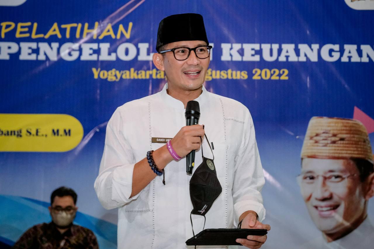 Menparekraf Sandiaga Uno saat menjadi narasumber Pelatihan Keuangan Sektor UMKM di Yogyakarta, Selasa (30/8/2022) menjelaskan tata kelola keuangan menjadi salah satu faktor penting bagi pelaku ekraf agar bisa bertahan hingga mengembangkan produk-produknya.
