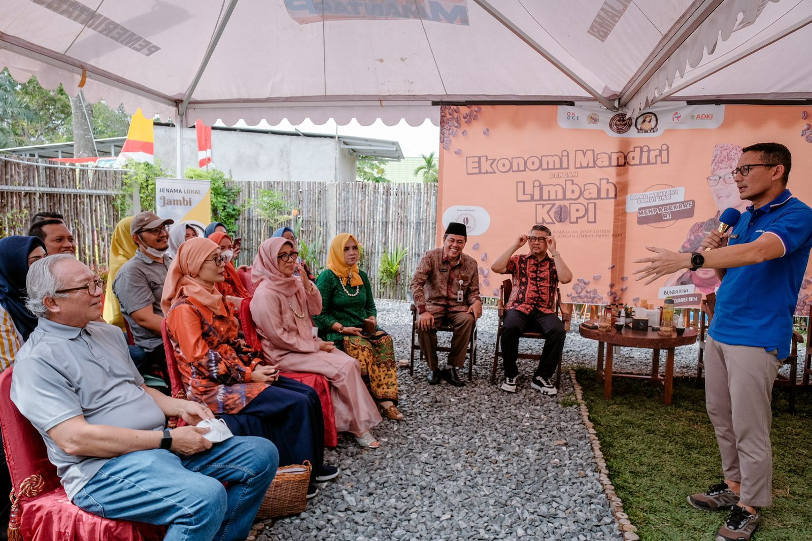 Menparekraf Sandiaga Uno saat hadir di acara pelatihan ekonomi kreatif “Ekonomi Mandiri” di D’Pathi Coffe, Kota Jambi, Minggu (4/9/2022), mengatakan, ekonomi kreatif merupakan sektor yang ideal dan tidak akan tergerus oleh zaman.