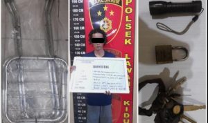 Dengan kejadian tersebut, korban mengalami kerugian lebih kurang Rp. 2.000.000, dan tersangka dikenakan pasal 363 KUHP sebagaimana dimaksud pasal tersebut pencurian dengan pemberatan,” tutup IPTU Yogie Sugama Hasyim