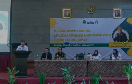 BANDUNG | dialograkyat | Cabang Dinas Pendidikan (Cadisdik) Wilayah VI menggelar Pelatihan Trauma Konseling dan Satuan Pendidikan Aman Bencana (SPAB) bagi guru bimbingan konseling (BK) jenjang SMA/SMK/SLB di lingkungan Cadisdik Wilayah VI.