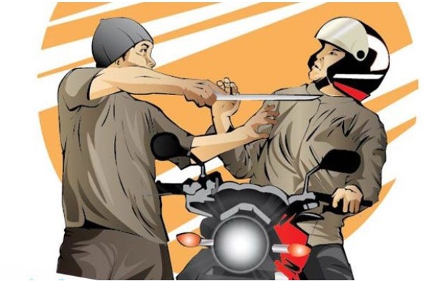 Tidak lama tiga orang pelaku yang berboncengan dengan satu kendaraan bermotor menghampiri korban.