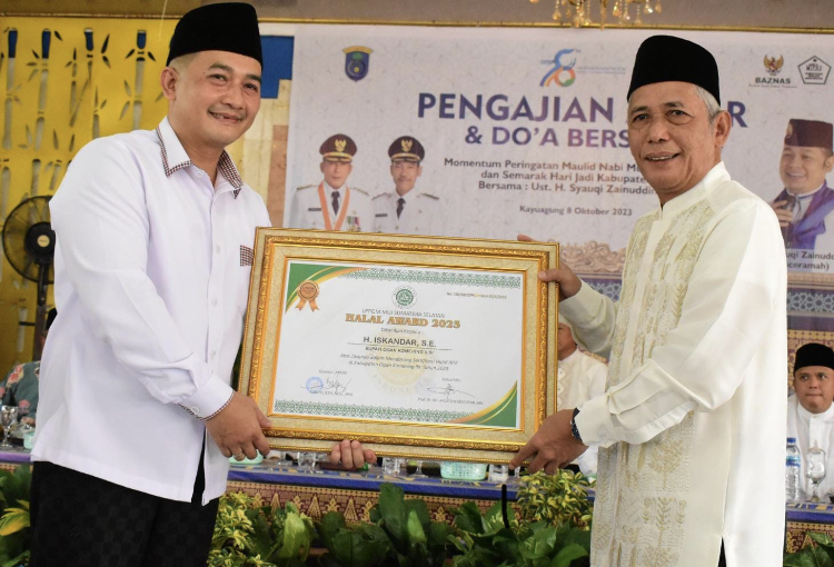 OKI | Dialog Rakyat | Bupati Ogan Komering Ilir konsisten menjadikan Usaha Mikro, Kecil, dan Menengah (UMKM) sebagai salah satu sektor prioritas untuk menjadi tulang punggung ekosistem industri halal di Ogan Komering Ilir melalui sertifikasi produk halal bagi UMKM di OKI. Atas upaya tersebut Bupati Iskandar menerima Halal Award dari Majelis Ulama Indonesia (MUI) Sumatera Selatan.