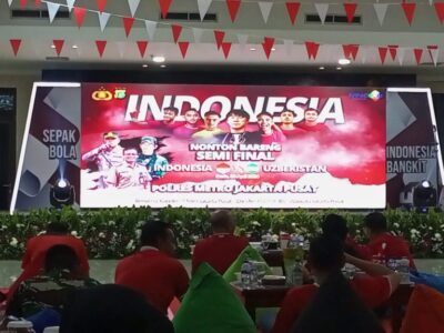 Sebagai bentuk dukungan terhadap Rizky Ridho dkk yang sedang berjuang di Piala Asia U-23 Qatar, Kapolres Metro Jakarta Pusat Kombes Pol Susatyo Purnomo Condro bersama PJU, Forkopimkot dan warga sekitar menggelar nonton bareng (Nobar) bertempat di lantai 6 Aula Slamet Riyanto Polres Metro Jakarta Pusat untuk menyaksikan anak asuh Shin Tae-Yong ini berlaga demi mendapat tiket ke Olimpiade Paris 2024.