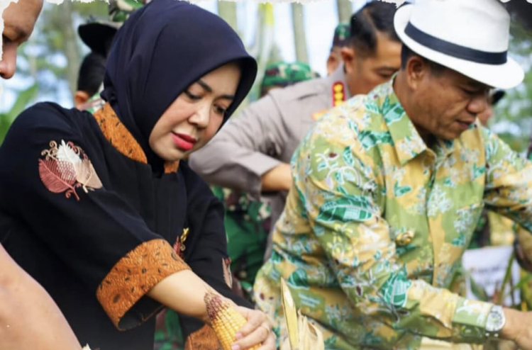 KAB BANDUNG | dialograkyat.comb- Ketua DPRD Kab. Bandung Hj. Renie Rahayu Fauzi bersama jajaran Forkopimda dan Dandim 0624 menghadiri kegiatan Panen Raya Jagung di Kec. Arjasari, kab. Bandung ,Kamis(24/4/2025.)